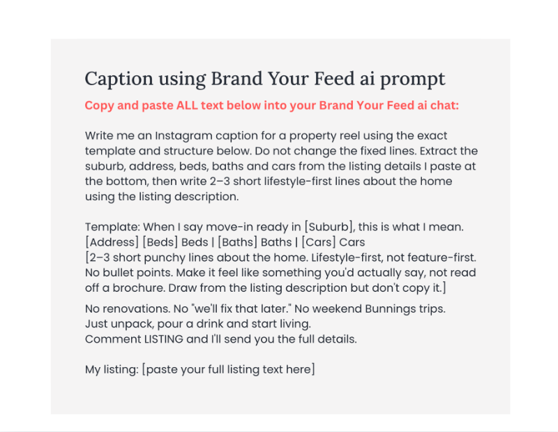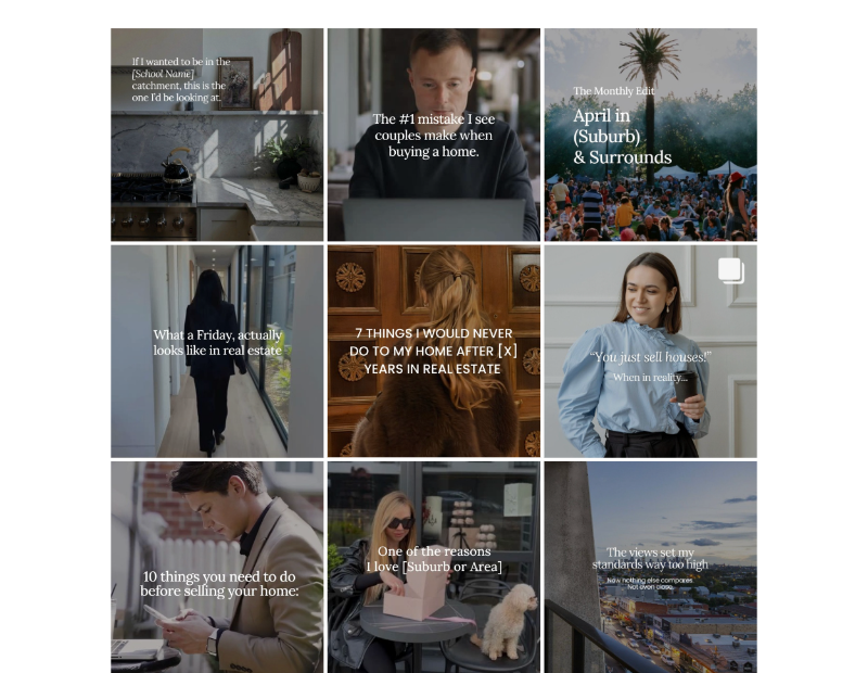 Brand your Feed is a social media content system that not only provides you with templates, but tells you what to post, when to post it and exactly how — so you can show up consistently, build your personal brand and attract listings, without spending hours on content or hiring a social media manager.